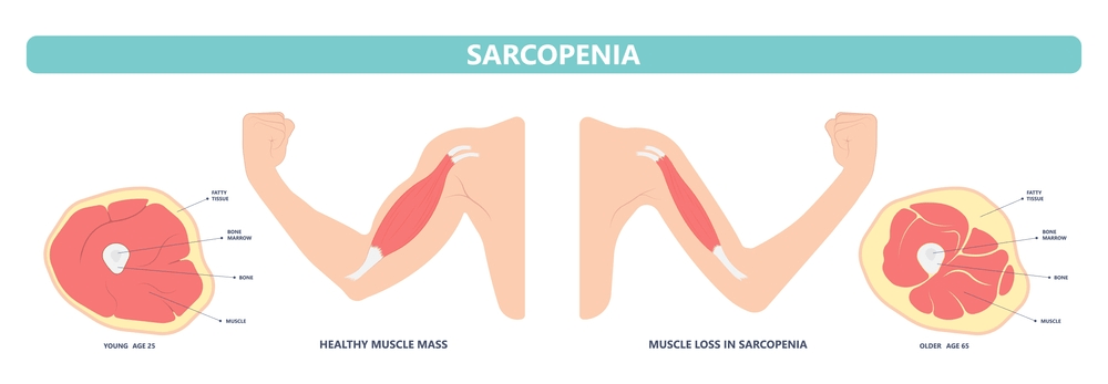 - Sarcopenia results from natural aging and is a combination of the loss of the number of muscle fibers and shrinkage of the muscle fibers in size. This is true muscle loss where the lost fibers are replaced with a tough, fibrous tissue (similar to scar tissue). Right now, fiber loss is irreversible; however, early studies are showing promise with a new drug for cystic fibrosis which has the potential to rebuild and make new muscle fibers.
