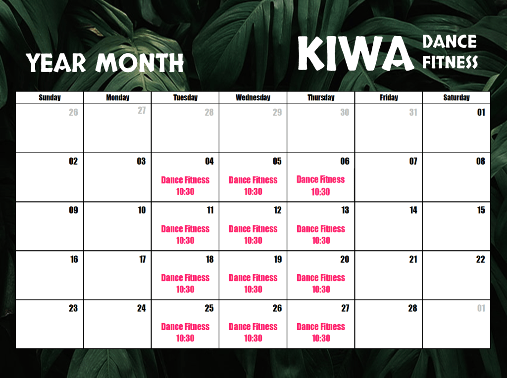 The monthly calendars and pass rates are posted on Facebook on the 28th of each month. https://www.facebook.com/kiwadancefitness/